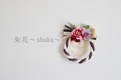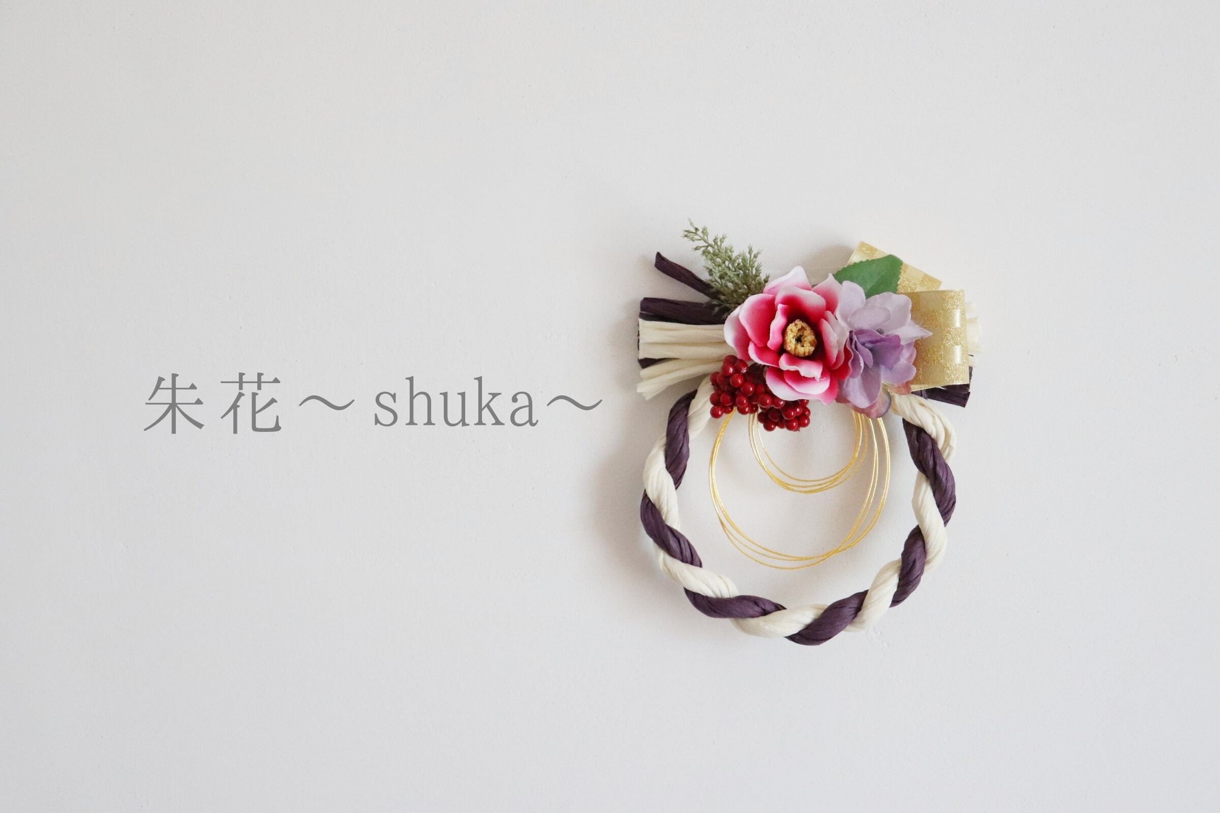 パープル×ホワイトのしめ縄が華やかな印象の、少し小さめのしめ縄です。