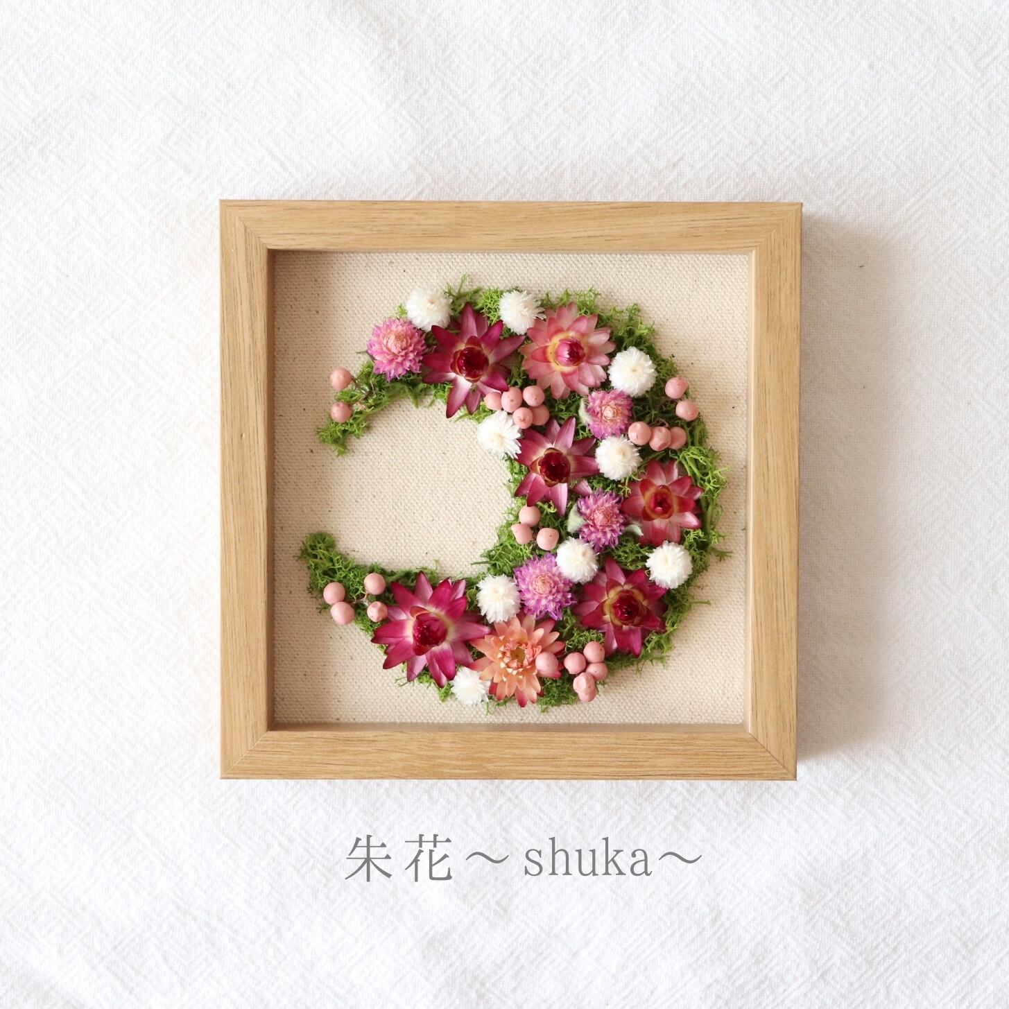 ドライフラワーとプリザーブドフラワーで、ナチュラルな月にアレンジしました。