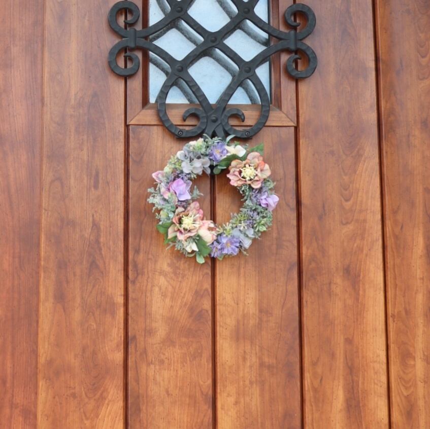 アーティフィシャルフラワーを使っているので、色褪せや劣化の心配が少なく、お手入れも簡単で、ドアリースにもお薦めです