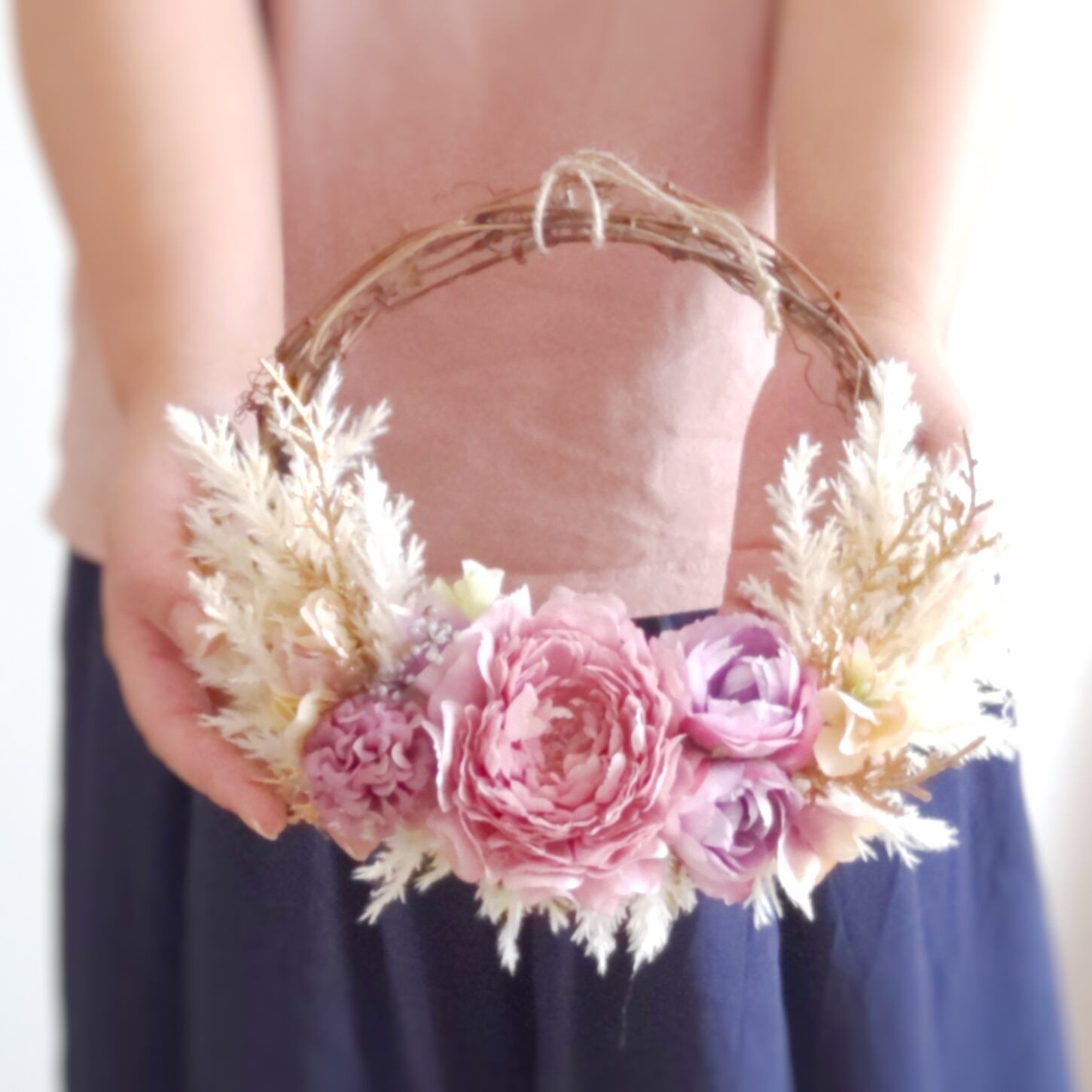 ピンク×ホワイトの秋冬リース