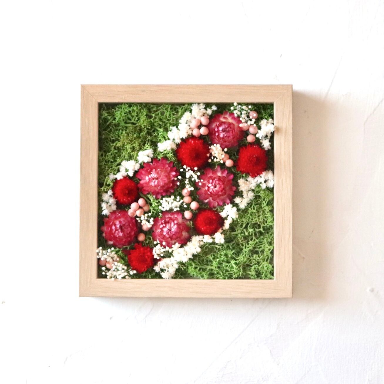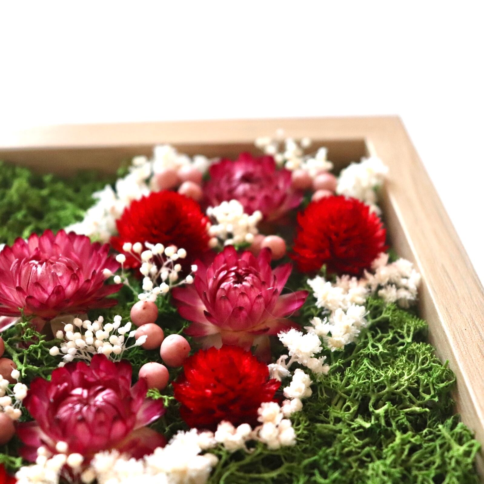 日常に癒しを与えてくれる、ナチュラルな魅力のドライフラワーを使用したフレームアレンジです。自然な色合いと風合いが、どんなインテリアにもぴったり調和し、特別な空間を演出します。